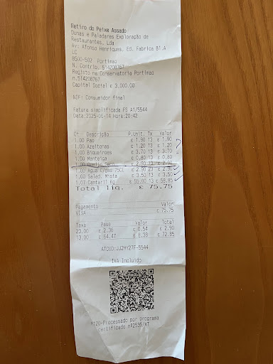 Read moreEntrar y elegir el pescado que comerás nunca lo hice, pero sin duda ayudado por el resto de reseñas nos hemos arriesgado a ir. La idea ha sido muy acertada. Una lubina maravillosa , a asusta el precio pero preguntar siempre cuánto pesa la pieza que habéis elegido. En nuestro caso 900 Gr, y una ración de patatas fritas por que mi pareja si puede las come. Al llegar a l mesa te ofrecen los típicos entrantes portugueses de aceitunas, queso, etc solo cogimos ensalada y pan. El pescado es enorme. Dicen que está cocinado con margarina o mantequilla, pero realmente a mi no me ha sabido a ello. Eso si he de decir que la mejor lubina que he comido hace tiempo. Ensalada 2 de pan 1 copa de vino 1,5 de agua 900gr lubina 57€ No creo que sea muy caro, dado la calidad de l comida, el trato muy atento. Por poner una pega el tiempo estimado de servicio del pescado es 1 hora. Postres no probamos nada, como le dije a David engordan la cuenta, y nosotros también. Pd: se me olvidó hacer la foto del plato de pescado , estábamos ya deseando cenar. Pero como ves la calidad indica el...