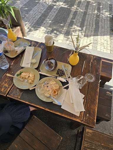 Let's start off with the positive: The food and drinks were all excellent, nothing to add to that. Our waitress was super nice and kind, no complaints there either. Now let's dig into the issue of this place: The owner - as is quite obvious if you read into the place's ratings a bit; basically every megative rating is connected to his behaviour. We arrived there on a sunny afternoon in September (not high season!) in the afternoon, maybe around 3pm. So not exactly the time around which one can expect a lot of customers. We were told by the nice waitress to just seat ourselves wherever with plenty of empty tables to chose from. Side note: The tables are all the quite small, quadratic kind. With no one around to ask we just put together to tables from the edge of the area and neatly collected the stools as well and placed them around the two tables, around which we placed ourselves as a group of three. Now, as I mentioned, these tables are quite small and parties of two present at the time in there were struggling to find the space for their plates as one does at such tables (evidence attached). Anyway, we ordered and everything was well - until some guy suddendly stood next to me looking down at me while sipping my drink. Outta nowhere he starts ranting about hiw he doesn't know where we're from (civilised Switzerland), but how it's rude etiquette to just take and put together tables and in response to my friends' baffled expressions he said: "you can make all the faces!". He continued to rant about how we're stealing space from other people and how we'd be occupying a table for 8 for merely 3. (Now that's not even delusional anymore, just straight up crazy. You could at best fit 6 stools around these two tables and that would only work, if each only had drinks, unlike us who ordered quite the assortment of plates - roughly two per person...). His sermone went on for like two minutes with a volume that let everybody in the restaurant have a piece in it (again something I observed while reading the other reviews; he gets off on doing these kinda things in front of an audience). Now I get it as far as I would've let the "rude etiquette" part slide and admitted that we could've asked first, although still pedantic in my opinion under the given circumstances of occupation - or the lack thereof. But when he finished preaching, basically only ever looking at me, I wanted to respond, but he didn't even give me time to breath and immediately almost ran inside only to not show his face once again. Ridiculous as the whole thing was it made for a good joke throughout the rest of the vacation...