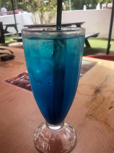 Lots of tables with parasols outside, and tables inside too. There's a food menu but we didn't eat, saw some burgers coming out and they looked a decent size.