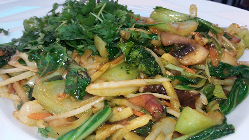 What can I say? It’s a fast food chain in a mall. Expectations are not high. But I ended up eating a decent teriyaki stir fry, vegan, cooked very quickly (I spent longer choosing the ingredients than they spent cooking!), and it tasted pretty good. The mango was a bit underripe so I wouldn’t pick it next time. Everything...