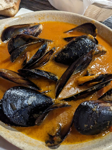 Read moreWe walked past this restaurant a number of times during our stay and there were always customers dining. On our last night we decided to call in. The person outside was friendly. We were taken to a table and given menus. We ordered - muscles and fish soup for starters. Both tasted lovely but the muscles had not had the beards removed and a few shells had broken and splintered into the sauce. Main course - lasagna (it came with no side salad disappointed) seafood with spaghetti came and this was presented well. Both tasted nice but again there were shards of broken shells in the spaghetti - easily to swallow and cause a scratch in the throat. I ordered a white sangria but it was extremely weak but very cold (which was lovely.) The staff was very attentive but I felt it was a cafe in the daytime but it didn't match up to the standard of a restaurant in the evening. Small fine adjustments to the food would have given more stars. The restaurant is ideally placed for all areas of Praria da Rocha to visit. I just felt a little...