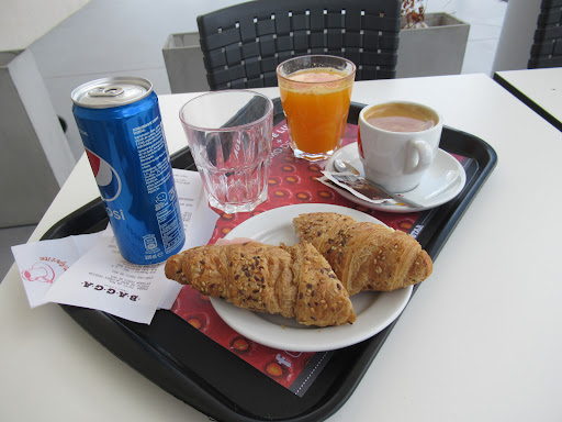 Had a coffe/juice/cheese-ham sandwich combo and a coke. Costs only a few Euros. Coffee was nice and hot and the sandwich tasted crispy and fresh. A nice load of cheese and ham.