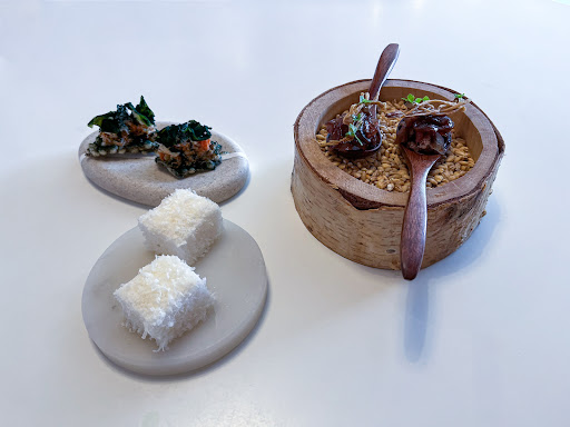 Serviço: Infelizmente, o serviço ficou muito aquém do esperado — provavelmente dos piores que já presenciámos neste nível de restauração. O chef insiste em assumir todas as funções: cozinhar, empratar, servir e explicar cada prato. O resultado é um serviço extremamente lento e pouco atencioso. Chegámos às 13h45 (antes da hora da reserva, marcada para as 14h00), mas só entrámos às 14h05 e o primeiro prato foi servido apenas às 14h25. O sobremesa chegou às 16h11, e as porções revelaram-se minúsculas, deixando-nos com fome no final.
