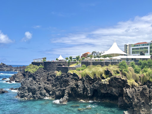 Restaurante Pólo Norte, in Porto Moniz (Madeira) Situated right next to the natural pools of Porto Moniz, it offers unobstructed views of the Atlantic Ocean, especially from the outdoor terrace . “Home-style” and Mediterranean cuisine: soups, salads, cod dishes, pastas, meats (chicken, pork, lamb) and kebabs — all prepared on the grill . The highlights are the grilled octopus, fresh fish with passion fruit sauce, and the traditional prawn soup served in bread . Lunch menu with main course, dessert and glass of local wine for around €20.