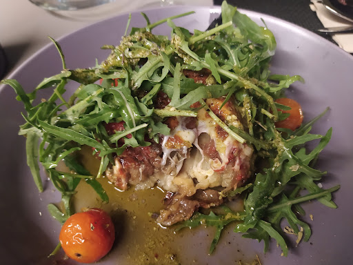 We had a very good experience here. The restaurant serves modern Italian food which is imaginative and interesting. We shared an aubergine parmigiana to start which was delicious, soft roasted aubergine with crispy cheese and roasted baby tomatoes with dressed rocket on top. For main, I had osso buco pasta which had lots of soft meat and a really deep flavour. The raw mushrooms were a surprise but I enjoyed them. We also had tortellini ragout which was delicious too, not a Bolognese type sauce as you might expect but a slow cooked meat sauce with cream. Desert was a deconstructed pastel de nata, with lemon sorbet, again not what I was imagining but interesting. The house wine was €15.50 and very nice indeed. Service was very good despite it being a relatively busy Friday evening. Prices are reasonable for this quality of food, service and atmosphere. We have eaten in many Porto Santo restaurants and this is one...