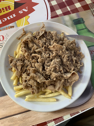Read moreGood food. Menu is in photos on the wall and prices are on another wall. I got a Bifana em Pão (what they are known for), a Prego em pão c/ Queijo da Serra (2 mini-beef sandwich). Then I had to order a Bifana em Prato (the pork meet from the bifana on top of French fries). The wife ordered the Secretos de porco (fried pork with French fries) and our son got a bichorrinho (Portuguese hotdog). We also had chocolate milk, two soft drinks, and a draft beer. Our bill was 26.50€.