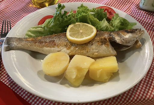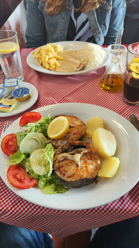 The restaurant is very traditional, and my guess, based on the decor, is that it has been around for a long time. Service is VERY efficient, and friendly! We had a salad and Portuguese sausage for starters. Both decent. Our mains were both fish (given where we were!). Again, both decent. We had an Alvarinho as the wine list is very limited. It too was decent.