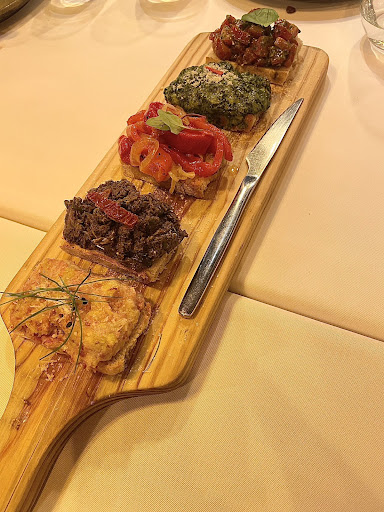 Read moreOne of the weirdest experiences we have ever had in a restaurant. We booked a table of 5 people at 7:30pm but we arrived at 7:00, normally we are seated with no problem and the restaurant is pleased that the client arrives earlier so that we can leave earlier as well to vacate the table for the next customers, well not this place. When we arrived 30 minutes earlier and they said to us that we could sit in the table but we couldn't order until it was close to the reservation time, we had nowhere to go, so we sat down and ordered water. It was 19:20, we wanted to order and another waiter smiled and said that we had to wait. The initial waiter came to our table at 19:29 to get our order, but wait, we could only order the appetizers, we could only order the mains after we finished with the appetizers, again weird. We ordered the tabua de bruschetta mista, pretty good, the tabue mista de enchidos e queijo, could have come with a bit more jam, and the last but not least, the carpaccio de picanha, which was pretty good, but took the longest time to come. For mains, the order the fusilli al pesto, de tortelloni, and two meat dishes, the scaloppine con marsala DOC, the scaloppine was delicious but the side was not the crispy parmagiano chip and sundried tomato, it came with baked potatoes, filled with cheese and toped with shoestring potatoes bought from the supermarket, very disappointing. We also ordered the filetto di maiale all'aglio Nero, it was an okay dish. Overall a weird experience from beggining to end and the food was very hit and miss, not worth coming here again. Positive : Tabua de bruschetta mista Carpaccio de picanha Fusilli al pesto The meat from Scaloppine