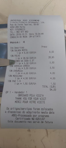 Review on Adega do Conde restaurant in Porto. This is a copy of what I have submitted on TripAdvisor.