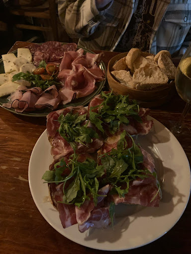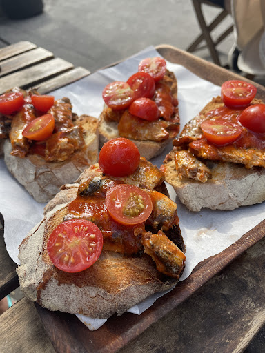 Read morePlace was so busy when we arrived and left. People sat outside drinking and eating. Great atmosphere. We were lucky to get a table inside. A couple left as we walked in. There's plenty of space outside to stand or sit on a sidewalk. We came here for a drink and a little snack but we ended up having loads of wine and a huge platter of meat and cheese! The house wine was out of stock when we got there so we went for the €4 a glass of red. It was really nice. We ordered a meat and cheese platter, bread and a two person portion of the toast mozzarella, ham and rocket. Everything was a huge portion so I'd double check what exactly your ordering. Tasted great. We grazed on it with more wine. Tried the green wine also which was nice too. The place was very busy and we saw some big lines to get served but it always moved fast so no one is waiting long. The toilets aren't great. Two toilets, pee all over the floor and no toilet paper when I went in. That's not enough to put me off coming here though. Great place! But the toilets might be an issue for...