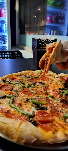 Amazing, small pizza place. Very cheap and super tasty. They made the pizza in front of you and is very fast and promptly. The pizza is huge. Even the individual one is a normal medium is some places. Very cheesy and super hot, right out of the oven. They do must delivery and take away but you can eat in the restaurant (3/4 tables). The have daily promotions with beverage. The only downside is that they don't have silverware or glasses. The staff doesn't understand much Portuguese but you can get around...