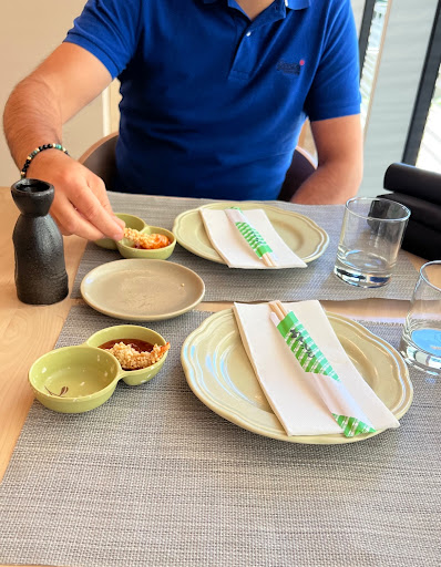 I had to go to the receptionist to ask if i could get soya sauce etc etc etc as sushi were on the table for 5’ and no sauce nothing