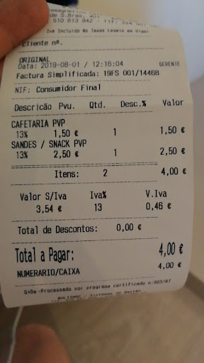 Read moreVery prompt service, particularly considering it was during the morning rush and my Portuguese is not good. The gentleman server was really kind in speaking in english with me. Brewed coffee and pastel de nata were good. Bills over 5 euro (which may be difficult to exceed) can be...