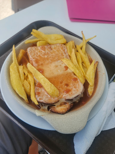 I honestly don't know why there are places in Porto that are very well located but DO NOT OFFER QUALITY to tourists. And I am going to write this review in English because I think tourists should be alert to this kind of places. I have been living in Porto for quite some time and I have never had anything like this happen to me before. We went to eat some "francesinhas" (typical food of Porto/Portugal), when we arrived and sat down they took a long time to serve us, the employees were just talking to each other. And there were only us and another guy at another table. We ordered 2 francesinhas (12€ each) not cheap compared to other places. With little molho, cold, the pork meat tasted bad, had a greenish aspect, I left it aside and to top it off a big hair between the meat, for God's sake. What a disgusting thing. There you realize that they only offer something to the public for the sake of offering it and they have no quality and much less hygiene, they changed our plate when we showed them the big hair between the meat, and although they brought us another one it was more of the same!!!! Appearance and preparation NOT AT ALL RECOMMENDABLE. And yes, these are things that can happen, I understand perfectly, maybe not even the employees who were attending the table are to blame, but please I hope that after this they will be more careful. Sincerely I will not return, there are more humble places in the city that offer higher...