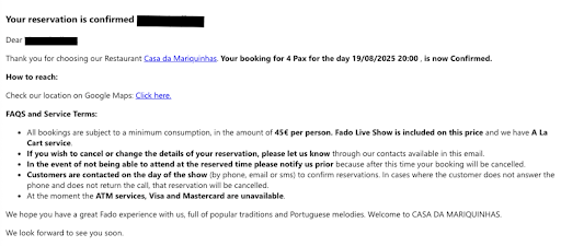 The fado, food and ambience were all fine, but my friend and I left on a sour note because of what we believe to be a lie from the restaurant…