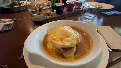 We loved the food and the service was good too. I ordered a Dunkel 1927 and expected it to have that classic sweetness that most german dunkels have but this one was actually sour so I went ahead and ordered an IPA instead. My fault for not trying the dunkel before ordering the full beer. I highly recommend the steak sandwich / prego de pão it was amazing. Codfish croquettes were also very good . The IPA beer was pretty good but it lacked some of the typical sweetness I expect from most IPAs. The bathrooms here are really bad unfortunately, very very cramped small and outdated. The womens did have a changing table which was a plus as we did come with a baby. Pluses are also that its a very large space with outdoor seating as well. Friendly servers too! If they had nicer bathrooms I would be...