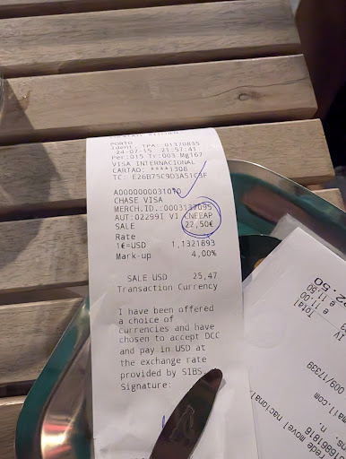 And your statement that all foreign cards are accessed a conversion fee is untrue again. Every restaurant/bar that I have been to in life so far has a card terminal which gives an option whether to accept conversion or reject it. If this is not something your establishment supports, it should be flagged to their customers right away!