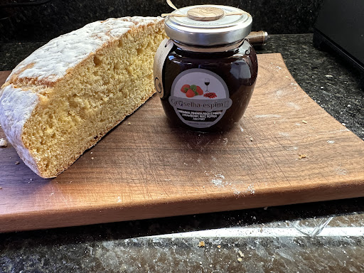 Starters? Cheese and sausage tasters, each lovingly explained—where it came from and why it matters. This was paired with cornflower with chestnut bread that tasted like Christmas in a bite. Main? Traditional pork dish with side salad. Dessert? Douro cake with a scoop of lemon ice cream, because Alvaro insisted. And thank goodness he did.