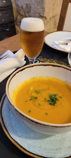 Read moreWe happened upon this place in an alley and the menu was enticing as were the prices. The special came with a glass of wine/beer/water, soup, specialty dish, & coffee for 12.50 (euros) I had the white wine and chicken stroganoff which was delicious and easily 5/5. My hubby had the fish filet 4/5. The service was great!! The ambiance wonderful, drinks….spot on (mmmmm) we also had a sweet dog looking out for us on the balcony. For the price and experience we would...