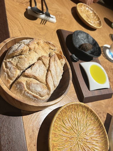 2/ Our table was made up of two single-person tables pushed together. When the bread was served, the server placed it on one side of the table. My husband asked for an additional portion of bread for the other side, and she astonishingly replied, "No, we only provide one portion of bread. You can get more once you’ve finished! Just put the bread in the middle!" Such a response and service are truly infuriating! In the first picture, you can see the bread. We’re paying 85 euros per person, 100euro for the wine, and they make us wait until we finish the bread before they’ll bring more! How do they expect to earn a Michelin star with service like this?!