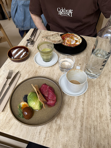 Letās move on to food. A simple avocado salmon toast bread we thought turned into two slices of smoked salmon half of avocado and the thinnest slice of bread I ever saw - I mean I could see through it. Forget the 16.5 euro price point for the meal - add 3.5 euros for a slice of toasted sourdough just to make your meal worthwhile. The price point is insane just to end up leaving you hungry at the end of it.
