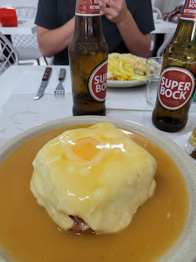 The Francesinha was OUTRAGEOUSLY YUMMY! The beer/tomato sauce...I could have gone face first into it, and drowned as a happy woman! The egg was not really runny, if you're someone who doesn't like runny eggs, and the toast, multiple meats, and cheese.... WOW!