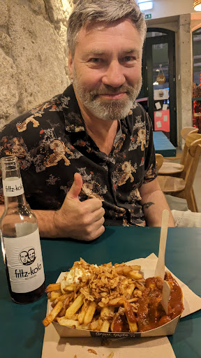 The best thing first. Friendly personell. Very service oriented, actually Interested in you as their guest & customer. The location is alright, nothing too fancy or special, but definitely clean and sorted. the food we had currywurst literally uncountable times and ofc there's all sorts of variations and taste is subjective. Lets put it this way, the sausage ain't anything special, absolutely relies on the sauce which is so crucial when talking currywurst. And the port-wine sauce wasn't delivering for me as all u could taste was a heavy very upfront wine taste, no seasonings, fruityness or additional flavors which is unfortunate. Didn't help that 2 out of 3 variations of their fries were out of stock, which can always be a bad sign and made us unsure right from the getgo! Last thing, we had a carlic mayo which was absolutely not our thing. It had such a heady overshadowing garlic flavor, but NOT in a good way unfortunately. I love garlic, cooking very garlic heavy. But that taste was not my thing, at all.