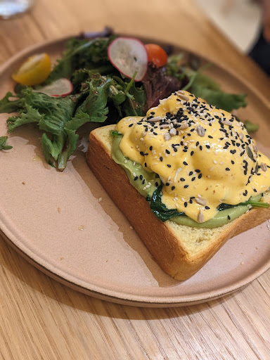 The space itself is lovely: bright, spacious, and well-decorated. The food was the highlight. Everything we ordered was genuinely delicious. The French toast, in particular, stood out in terms of flavor and texture. However, the presentation could use some improvement. It was served on a wooden board with a layer of paper underneath, but with the maple syrup and melting ice cream, the paper started to dissolve and stick to the food. Unfortunately, part of it ended up being eaten by mistake.
