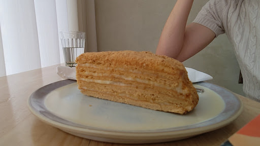 Despite the café being almost empty, it took her over 20 minutes to prepare three coffees — mine arrived cold. As for the cakes, they looked appealing but unfortunately tasted the opposite: dry, bland, and not worth the calories.