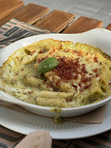 On a busy Wednesday evening, our group of three were looking for a vegetarian friendly non-Portuguese cuisine option and found this lovely restaurant. We asked for a table and saw there was only a table for two, outdoors, that was available. The owner immediately accommodated us and asked us if we were ok with sitting three to the table (which was more than fine), and hurriedly set up the table so we would be comfortable. We ordered drinks (limoncello and aperol spritz), which were very refreshing for a warmer evening, and ordered the gnocchi with ragu, gnocchi with tomato sauce, and the lasagna. The portions were excellent and large, came out fresh and hot, and tasted delicious!! Before our entrees came out, a table of two closer to the street finished up their meal and left, so the owner of the restaurant asked us if we wanted to move to the better table so we could face the street and have more room (instead of facing the wall). Such a kind move and totally unexpected, but we were so grateful as there was live music and it was fun to people watch. I later saw him do the same to another table (where he lifted and moved the physical table so it was in a better spot), so needless to say, the owner was incredible.