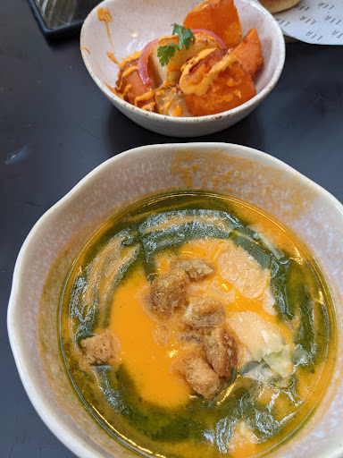 Super cute place! I would recommend a reservation. We waited about 30 min for an outside spot, but 2 inside spots became available during that time. We had drinks while we waited. The food was incredible! The service was very good as well. Previous reviews mentioned that the staff weren't smiling, and to a certain point that was true, but they went above and beyond to help and were very friendly. I had the tomato soup and nacos de batata. they have the BEST tomato soup! The potato's were good too. Hubby had the chicken sandwich and he said it was really...