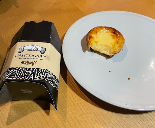 The only food item they sell is Pastel de nata(egg tarts). As of October 2024, it was €1.30 each. I ate two in store, and another two a couple of hours later back at the hotel. Comparing the ones which I ate in store, the crust was a bit harder than the egg tarts at other stores. The custard was soft and sweet. I think Castro has a softer, thinner and flakier crust. Castro’s egg tart gave you the desire to have one more. Manteigaria’s egg tart was good in its own right but just didn’t create the moreish desire that Castro’s egg tart had. I would give Castro the edge. The store is nicely renovated and has standing space for customers to consume their egg tarts on the spot. There is a perpetual queue for this shop but it is a “manufactured” queue. The queue moves very slowly for a shop selling only one item. While I was there, there were 4 counter staff. One just focused on handling the payment, second one was taking order and packing the order, third one was only handling drinks and the last one was busy with admin(?) tasks. Most of the time the other three staff are just standing around and waiting for the person that is packing the order since payment is a quick process and relatively few people order drinks. This is causing the bottleneck. There would be virtually no queue if there were two staff, instead of only one staff, packing the order. Not sure if this is intentional by the store to create the queue. Overall, an enjoyable treat but owner can improve on the work processes.