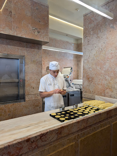 The tarts are made in front of you. So, you can see people hard at work and the constant production of Portuguese tarts.