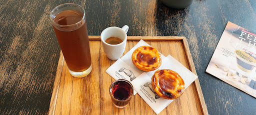 The pasteis de natas are reliably delicious, warm and fresh, not least because of the high turnover... and they're reasonably priced. Therefore, I'd say this is the best place to get them. You'll want to order two at a time. The Americanos are absurdly pretentious and overpriced, and for some bizarre reason must be ordered from a dedicated counter. Espressos-only at the pasteis de nata counter. It's often packed, so finding seating can be an issue sometimes. Just be sociable and share a table. The interior is nice and modern. The transparent bakery is a clever bit of theatre. They have a refreshing, cold, non-alcoholic cocktail 'Capile' which is definitely worth ordering when you don't fancy a hot drink. I also ordered the ginja cherry liqueur, which was a nice novelty but needed to be paired with a capile, IMHO.