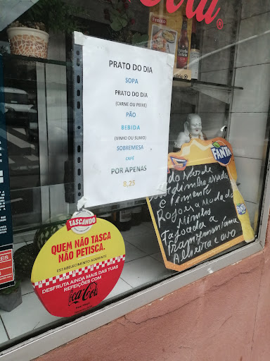 This is the kind of hole in the wall that I would probably not venture into, especially as a solo female traveler, without the benefit of other Google reviews. So let me do you a favor and say if you are coming in by train or bus, and you want a genuine local experience at a price that is hands down the best meal value I’ve had anywhere in Europe, don’t be put off by appearances. Full of local very colorful regulars when I came in for lunch, the proprietors dote on their customers including the elderly and disabled, plus they eat their own cooking. Everyone was kind and friendly (Portuguese only). Daily menu 8.25 € gets you soup, jug of wine, bread, huge plate of no frills meat or fish with rice and potatoes etc, plus dessert and coffee. And WiFi. It’s all delicious. I got the meat and it was two generous thick slices of tender well seasoned roast pork, which appeared immediately. My vegetable soup appeared after the main course (I think because a fresh pot was cooking). Several dessert choices, at this point my language skills met their limit so I just nodded and a layered tort appeared, a cookies soaked in whipped cream type thing, inhaled it. Take a chance and enjoy...