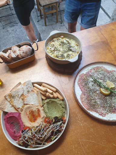 Oh my goodness, this place was incredible. The most delicious food, amazing drinks and the friendliest staff. We visited for an early dinner at about 6pm and were the only ones there - 15 minutes later there were two other tables and by 7pm it was full. It's quite small, so I'd recommend getting there early. Between two of us we had the olives, the camembert, the hummus trilogy, and the beef carpaccio. There was a really good number of veggie options. They also had a brilliant selection of mocktails and cocktails which looked and tasted amazing. Staff were so friendly, checking that everything was good and offering more bread and nachos. Honestly can't praise this place enough, you absolutely must visit. Great location close to the river - would recommend an early dinner here before watching the sun set over the river. It was the most expensive place we ate at in Porto (we paid €60 including a tip) but also the best by far and the price was completely justified by the quality of the food and drink, the location and the...