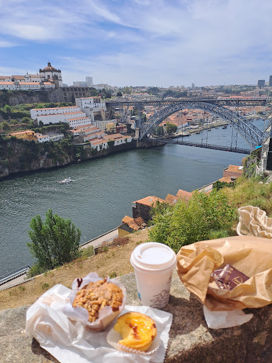 A somewhat hidden gem in the middle of the touristy old city. Had a nice but a bit busy atmosphere inside the cafe with a mix of locals and tourists, but I recommend taking it to go and sitting down the road by the parking lot with a beautiful view of the river. The sweet staff laughed a bit when I looked confused by the small price. Got two small loaves of bread, two Pastel de Nata, a big walnut muffin and an americano for 6,5 euros. All so good, muffin and cakes were amazing and you could tell the bread was fresh, both...