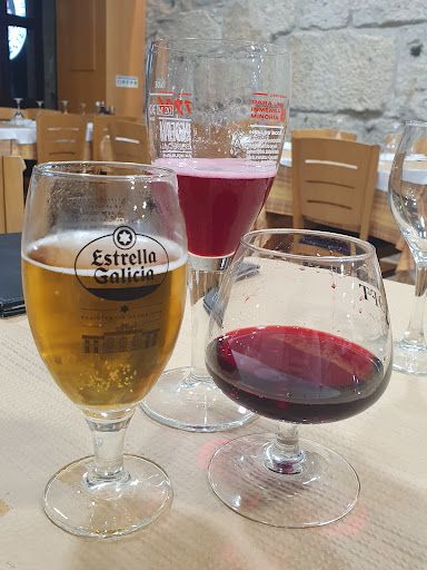 For drink: Their sangria is a bit too sour for me, but my bf likes it. I was curious what 0.5€ 'groselha' is, so I ordered it. It turns out to be a very condense juice, the waiter asked if I want to try it with beer, it's very good like that. He gave us a glass of beer, pour half beer half groselha in a very big glass (in the picture). It's indeed very good, but better if the proportion of groselha is just a shot. I think they do have beer with groselha in the menu, name 'fino c/...