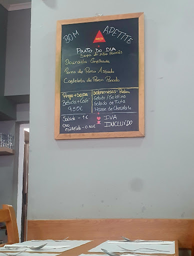 Preço do menu: Sopa, pão, prato, bebida (um fino, por exemplo) e café/descafeinado: 5,50€. Mais a sobremesa: 6€.