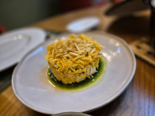 Read moreAfter not being able to get a table the first evening, we booked for the next night. It has to be said, the service varied. After being advised that two, in the party of four wanted soft drinks, the wine arrived for the others, and no order was taken for the drinks. We were then left for about 15 minutes before we were approached by serving staff again. Interestingly they hovered when the bill needed paying. The restaurant felt rather pretentious. Despite booking, we were sat at the chef's table, opposite the kitchen, away from the main quiet area of the restaurant. The food was good. Everyone enjoyed their meal. It was tasty, cooked beautifully and served well. Service could have been better, but food almost made up...