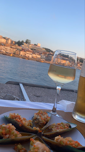 Read moreThis restaurant has tables inside and small ones on a veranda overlooking the Douro River with a view on Vila de Gaia. We stumbled upon this place en route to another restaurant that didn't have outdoor seating and decided since the sunset was gorgeous to grab an outside table and enjoy the view.