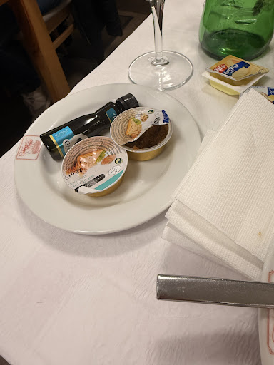 To top it off, the menu tries to appear upscale by listing the price of each tiny, complimentary-sized couvert item, butter, pâté, etc. literally item by item. And butter was already opened and eaten by the previous customer... What a “restaurant”…