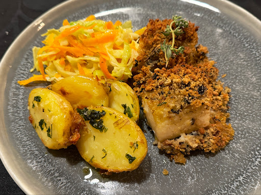 Unser absolutes Highlight war Rute Rita die wir schon aus einer anderen Show kannten. Jetzt nicht zu essen, geht jetzt um den Gesang, die Show begann gleich nach den Pimentos. Vom Ablauf super! Aber auch der Männerpart des Fado passte super. Der Mann war an allen stellen gleichzeitig und genauso beeindruckend war der Gesang. Frau und Mann im Duett finde ich beim Fado ohnehin super. Passte! Jetzt aber wie vom Ablauf her zum Essen: Die Krake hatte es sich auf eine Süßkartoffelmuss bequem gemacht und war super lecker. Für mich hätte der Krake etwas knuspriger sein können (pimentos Style), aber just das knusprige hatten in anderen Rezensionen Leute bemängelt. Vermutlich hat die Küche reagiert. However war ein riesen Ding und lecker. Der Fisch war auch gut und vor allem gut gewässert. So ist Portugiesische Küche sehr angenehm. Fleisch hatten wir nicht ... sah am Nachbartisch nen bisschen rare aus. Womöglich hatten die dass aber so lebendig bestellt ... Meine Empfehlung sind klar die Meeresfrüchte.