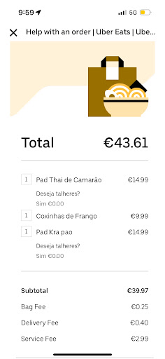 Read moreThe night of 24th, we arrived late in Porto so we decided to order some Asian food as my friend and I are familiar with the taste. As you can see from UberEats, we ordered the Pad Thai with shrimps, Pad Kra Pao and Green onion chickens. The same night we finished eating, I started to feel discomfort in my stomach and I threw up at 2am, then again and again a few times(I’m sorry if the photo bothered you but I want to warn everyone). My friend had diarrhea more times than she could count till the next day. We had to cancel our wine tour the next day, not to mention the cost, but also wasted time waiting in emergency to be seen by doctor for prescription. The whole day of 25th we could only rest. I contacted UberEats the same night, they refunded me and said the restaurant will be in touch with me soon, yet till today 26th we did not receive any message from the restaurant. You may ask, why are we so sure it’s from this restaurant? Well we did not consume any food or beverage 8 hours before this take out delivered, the last meal we had before this was a delicious tapas in Lisbon, then we took the bus. Also my threw up content can prove it. To be fair, in all the Thai food I tried before this is ok, not delicious but at least ok, the sauce in Pad Thai was weird but I thought maybe it’s the local taste, but now I realize maybe that’s what caused the food poisoning. I hope the restaurant takes this case seriously and check all your...