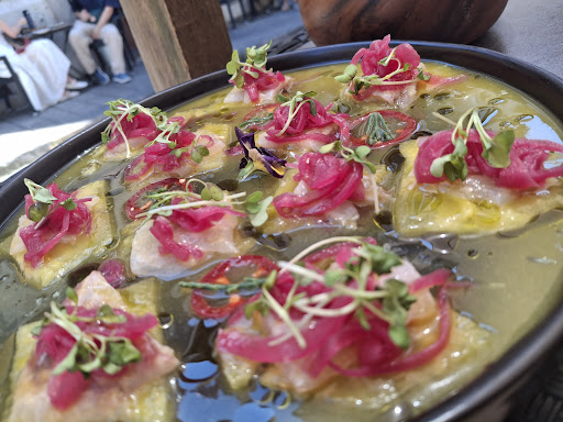 “the door” — Porto’s Must-Visit Culinary Gem. Nestled in the vibrant and quietly enchanting heart of Oporto, the door is less a restaurant and more a beautifully orchestrated experience — one that beckons you not just to dine, but to feel, to savour, to remember. From the moment I stepped inside, there was a quiet magic humming beneath every detail, and by the time I left, I knew I had stumbled upon one of Porto’s truly essential dining destinations. Let’s begin with the starters, which arrived with a quiet confidence — each dish whispering promises that were spectacularly kept. The white fish, served delicately fresh with an ethereal zest, was like tasting the Atlantic on a spring morning — light, pure, and precise. The smoked babaganoush revealed earthy, smoky depths that warmed rather than overwhelmed, a dish so effortlessly refined it could have easily been a main in lesser hands. But it was the nori tacos that truly stunned: a playful twist on tradition with an undertone of heat, each bite perfectly calibrated to intrigue and delight. They didn’t just serve food — they told a story. Then, the mains. Oh, the mains. The Angus beef carpaccio was a melt-in-the-mouth miracle — paper-thin slices of umami-rich wonder that needed no flourish beyond their own exceptional quality. The scallops, which might easily be overlooked in less capable kitchens, stood proud as another star. Sweet, oceanic, kissed with just the right balance of acidity and fat — a dish of subtle genius. The beef tagliata followed, cooked with reverence, the kind of meat that speaks of a kitchen that knows its craft and honors its ingredients. And finally, a bite-sized foie that was anything but small in impact — an umami bomb that lingered long after it vanished. By the time dessert arrived, I assumed the highs had peaked. I was wrong. Their sticky toffee pudding was the finale of my dreams: warm, buttery, impossibly moist — a dessert that dared to flirt with decadence and succeeded spectacularly. It wasn’t just a sweet finish; it was a love letter to comfort and indulgence. Yet beyond the exquisite dishes, what elevates the door into the realm of the exceptional is its team — a tight-knit ensemble of personalities that operate with the grace of a ballet and the energy of a jazz band. Flor, Pato, Mika, Laucha, and Paco — names I won’t soon forget — bring warmth, precision, and a palpable joy to every corner of the room. There’s a rhythm here, a fluidity that can’t be taught — it’s the result of genuine camaraderie and professionalism, and it’s utterly infectious. The door isn’t just another addition to Porto’s culinary scene — it is, in every sense, a beacon. Whether you’re a seasoned gourmand or a curious traveler, make your way here. Book the table. Take the ride. You’ll walk away nourished, inspired, and very possibly changed. A triumph. An...