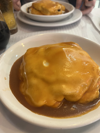 A francesinha… Ah, a francesinha. Ela não era apenas uma refeição; era um enigma, uma experiência quase transcendental. O molho, espesso e envolvente, parecia ter sido criado em algum outro plano, onde os sabores se fundem em um abraço eterno de intensidade. O pão crocante, dourado na medida exata, segurava o recheio com uma precisão quase sobrenatural. O bife… o bife estava perfeitamente mal passado. Carne suculenta, com o interior rubro e vibrante, contrastando com o exterior dourado. Cada mordida parecia nos transportar para outro plano, uma explosão de sabores que só a verdadeira perfeição poderia oferecer. Para quem não é fã do mal passado, a opção de pedir bem passado está sempre ali, mas o verdadeiro espírito da carne vive naquele ponto exato.