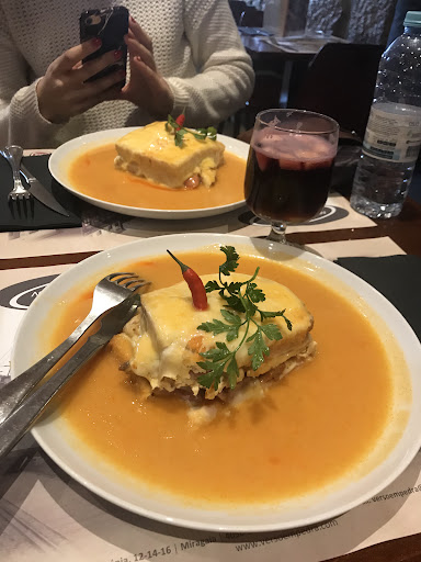 Read moreTypical tourist trap. Me and a group of 6 friends were there for dinner a couple of days ago. We ordered one francesinha each and a liter of sangria in total. Right after having ordered, the waiter comes to the table leaving two plates with olives, tuna mayo/sauce and crostini, like some restaurants do as a "welcome starter". The francesinha was really mid, the sangria brought to the table was served inside of a pitcher filled with ice cubes, so definitely less than a liter like we ordered, and it was really watery. Once being done with dinner, we went paying to the cashier and we noticed how we were charged 6 extra euros for the starters that we didn't ask for. I immediately asked the waiter what that extra expense was for and he showed me with a shaking hand the menu, pointing to the starters. Needless to say that we told him to get that extra amount off of the bill. To the waiter in question: I saw you laughing when we left from the restaurant. Hope that several reviews of 1 star each that are about to come are gonna teach you one simple lesson: you tried to scam the wrong people. Greetings from...