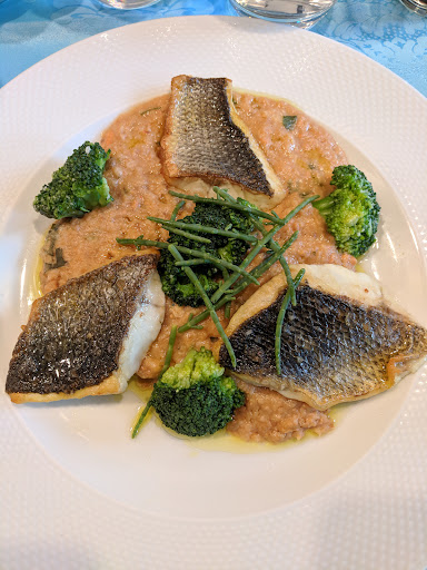 I had a fried golden sea bass with lobster sauce beneath with sea asparagus. This was the first part where I was confused and the server couldn’t answer what the sauce actually was prior to ordering. It turned out to be the insides of lobster with flour and stock. Tasty, but needs to be better explained as anything with lobster increases the price. There is no lobster meat in this dish, just offal. The searing on the fish was also poor. Skin was crispy in spots and then chewy in others, the fish was also over cooked and dried out.
