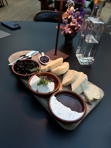 We were staying at the hotel and decided to have dinner at the restaurant. Be prepared to wait — it took about 45 minutes to an hour for our food to arrive. We showed up five minutes early for our reservation, and the hostess, with quite an attitude, made it seem like we were lucky to even get a table, as if this was the hottest spot on the planet. Despite her claiming the place was fully booked and extremely busy, there were 5-6 empty tables the entire time we were there. Our reservation was at 9 PM, which seemed to be one of the last available slots.