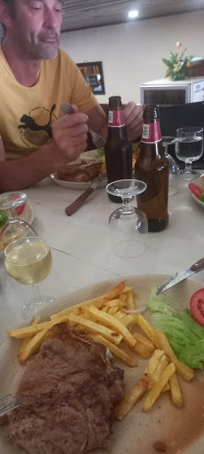 A receção foi rapidamente feita rapidamente pela empregada. Pedimos costela de vitela , jarro de vinho da casa , e sobremesas. A costeleta de vitela estava muito saborosa, a carne é de bastante qualidade e o facto de ser feito na brasa dá um sabor muito bom , apesar de não estar no ponto certo o facto da carne ter qualidade faz toda a diferença, as batatas fritas eram muito boas o que normalmente não acontece nestes restaurantes mais típicos das vilas do interior. O vinho desiludiu um pouco, mas a sobremesa compensou, de que maneira , o bolo de bolacha é provavelmente o melhor que já comi nas redondezas, tem o balanço perfeito entre o doce/café/bolacha, de chorar por mais! A mousse de café também estava muito boa. No final pagámos 50 euros por 3 pessoas, no final do almoço ainda estivemos na conversa com o dono que foi muito simpático antes de sairmos do restaurante! Ótimo restaurante, típico e sem dúvida a...
